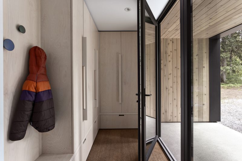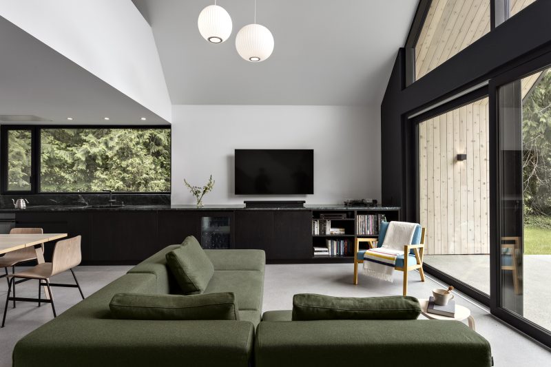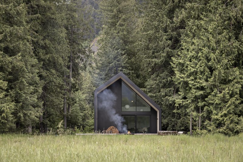 A small gem shaped rift on a traditional A-frame. High volumes and playful bedroom configurations prioritize the common living space, while a private and unexpected bathroom provides a detailed view of the forest floor and snow covered farmland.