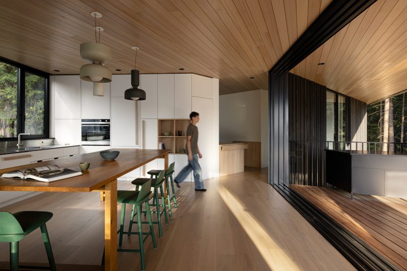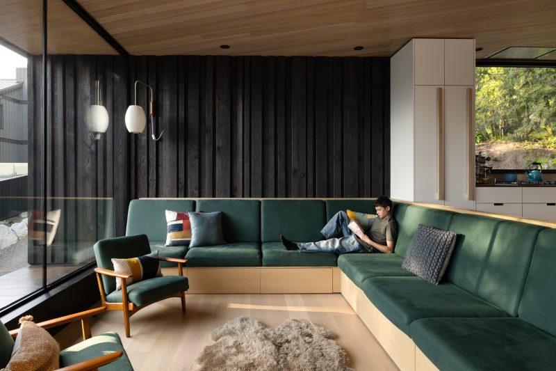 A unique Accessory Dwelling Unit which acts as a recreational cabin for a Squamish local who moved out of town. Mid century and cabin aesthetics merge with an intentional design ethos of durable materials and approachable social space.